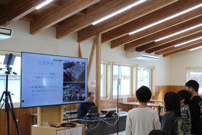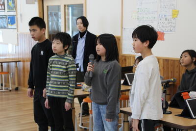 2月3日、5・6年生が遠隔交流授業を、大阪府茨木市立忍頂寺小学校、沖縄県南大東村立南大東小中学校とオンラインにて行いました。お互いに自分たちの町や学校での取組の様子を発表し、その後、質問を交わしました。他府県について知ることができ、有意義な交流ができました。